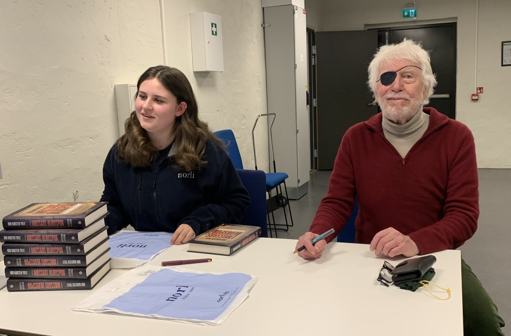 Til slutt var det boksignering - Norli-Ålgård stilte med bøker og Odd Karsten Tveit signerte villig.