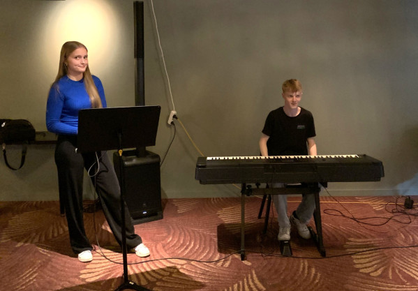 Victoria Berner Figved og Steinar Mar Arnarsson fra Gjesdal Kulturskole underholdt oss i innledningen til festen på Jonas B.